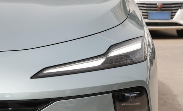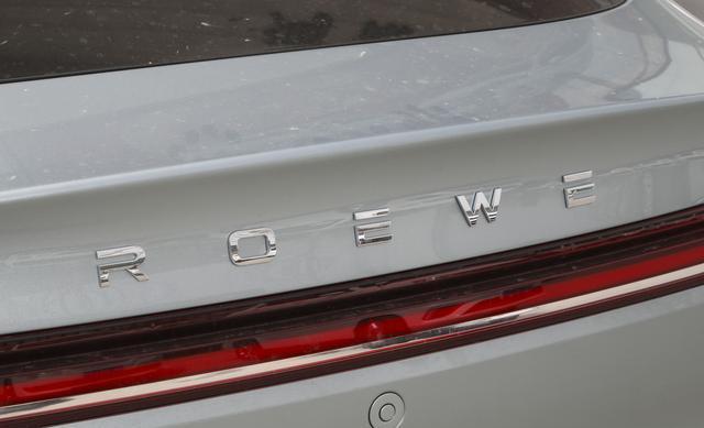 看看之前店里拍到的实车,荣威纯电D6的前脸设计跟现在卖的车型可不一样,它用了分体式大灯,还有那个官方叫做“星轨交错”的日间行车灯。车头的正中间是ROEWE这几个字母的车标,车标底下还有个小小的进气口。