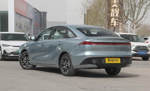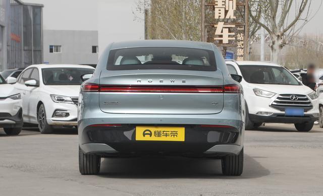 车尾设计这块儿,荣威纯电D6搞了个连贯的尾灯组,后保险杠上加了点黑色亮面材料,后备厢盖那边还做了个像扰流板的小造型。说到车身大小,荣威纯电D6的长度、宽度、高度分别是4792毫米、1828毫米、1496毫米,轴距是2750毫米。咱们拍到的这辆车,看着像是用了新款的“沧浪”车漆,颜色是绿和灰搭在一起的。