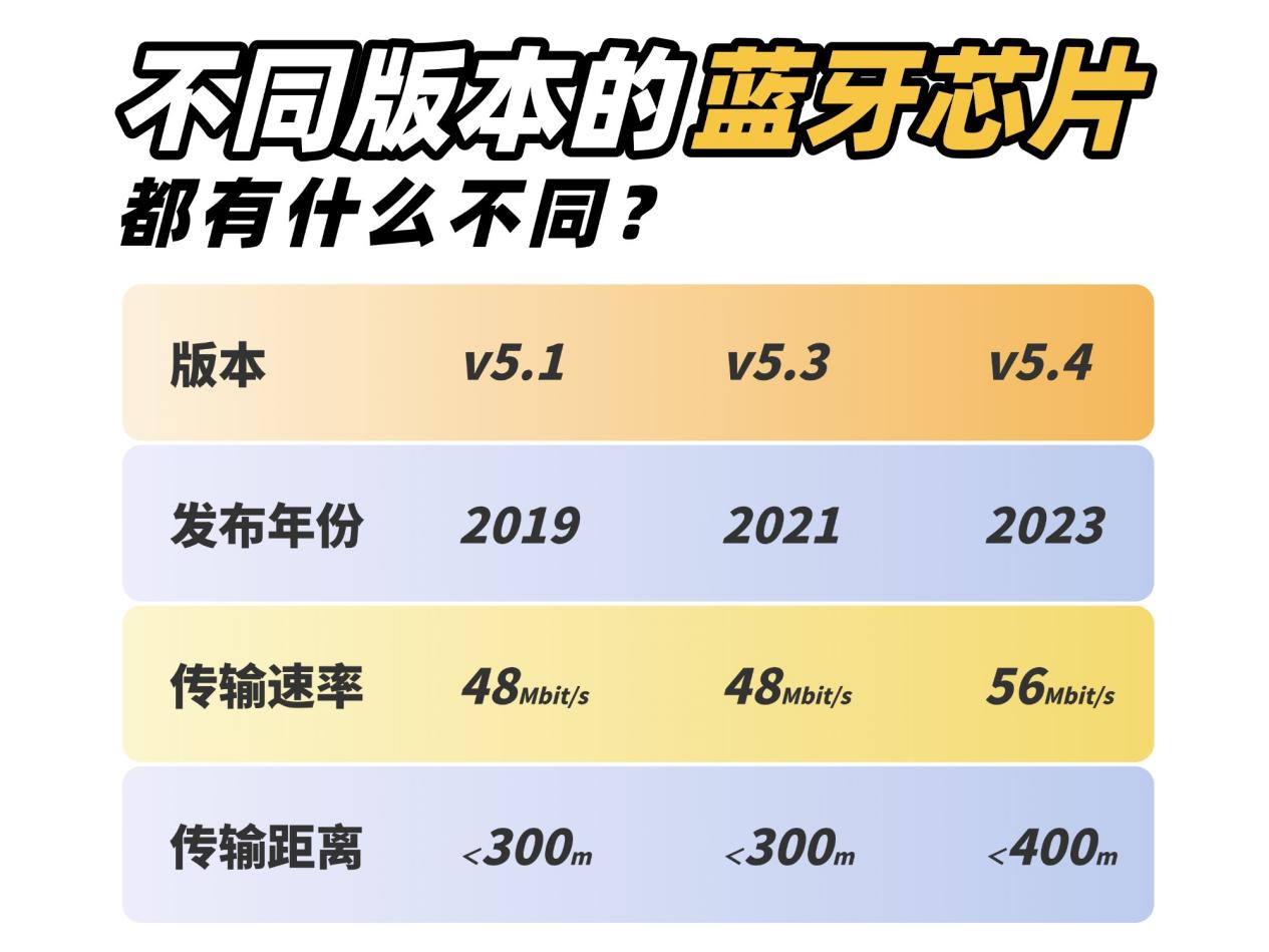 对于蓝牙耳机来说,蓝牙传输性能是最关键的核心性能,而蓝牙版本越高,蓝牙传输性能越好。目前最高版本的蓝牙为24年发布蓝牙6.0,其次为23年发布的蓝牙5.4,在选购时,尽可能的选择这两个蓝牙版本的款式。