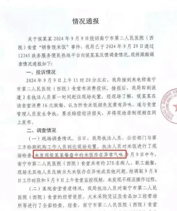 近日,有博主在南宁市第二人民医院食堂购得被搜去的大米,随即向市监局进行了举报。医院食堂对此予以否认,并以侵害名誉权为由对博主提起诉讼。经过三个月,最终检测报告公布。