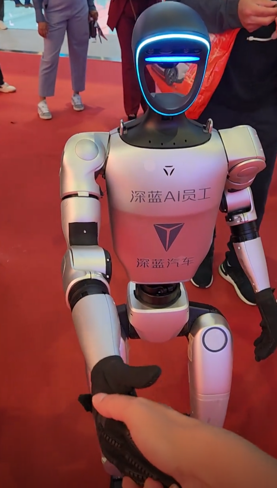 车展现场,宇树机器人作为深蓝汽车的“AI员工”与观众握手,智元机器人则为上喆汽车担任讲解员。相比之下,Iron的工业属性更突出——它的双手1:1复刻人类尺寸,触觉反馈精度足以拧紧汽车螺丝,而宇树H1的强项在于舞蹈动作的精准控制。网友调侃:“一个能歌善舞,一个能搬能装,车企这是要把机器人卷成‘六边形战士’?”