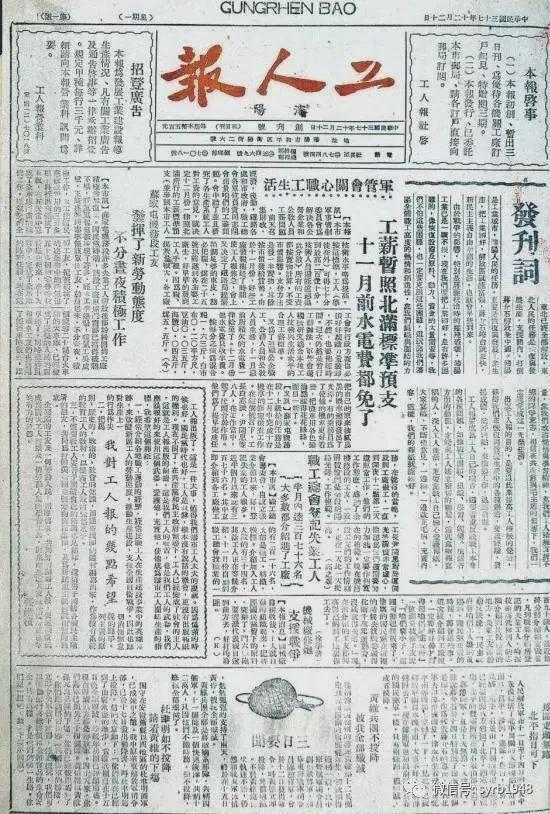 1948年12月20日清晨,四开四版的《工人报》,与沈阳人民见面。这份报纸既是中共沈阳特别市工委机关报又是工会机关报,服务对象包括工人、店员等。