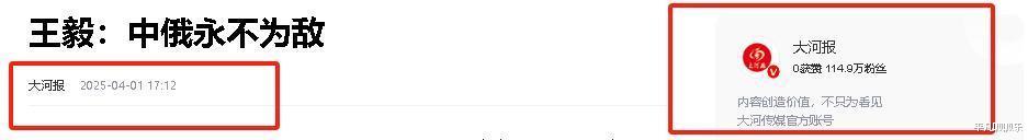 4.2025年4月1号大河报报道,王毅表示:中俄两国永远不会成为敌人。