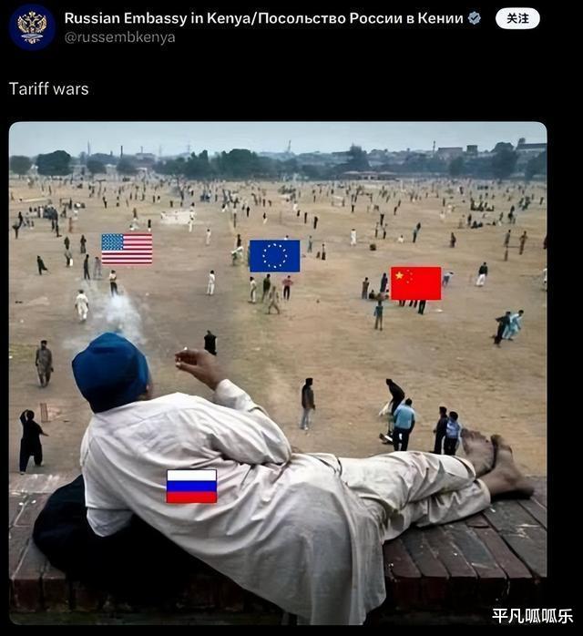 2025年4月8日,当中美贸易战成为全球焦点时,俄罗斯驻肯尼亚的大使馆在推特上发了一条挺逗的消息。