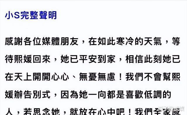 在此,衷心祈愿大S在另一个世界能够安息无忧,愿她真正在彼岸找到了梦寐以求的生活,步伐轻盈,心灵自在。