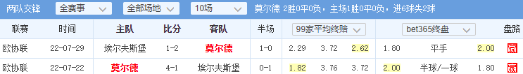 埃尔夫斯堡:埃尔夫斯堡俱乐部成立于1904年,曾夺得过6次瑞典足球超级联赛冠军、3次瑞典杯冠军、1次瑞典超级杯冠军。埃尔夫斯堡对欧战重视程度很高,本赛季6场欧联杯资0格赛豪取5胜1平,保持不败。最近比赛球不少,近33场各项赛事多达31场至少2球,其中多达 23场至少3球。埃尔夫斯堡进攻很稳,近17场正赛只有1场白卷,且场均效率也超过 2球。