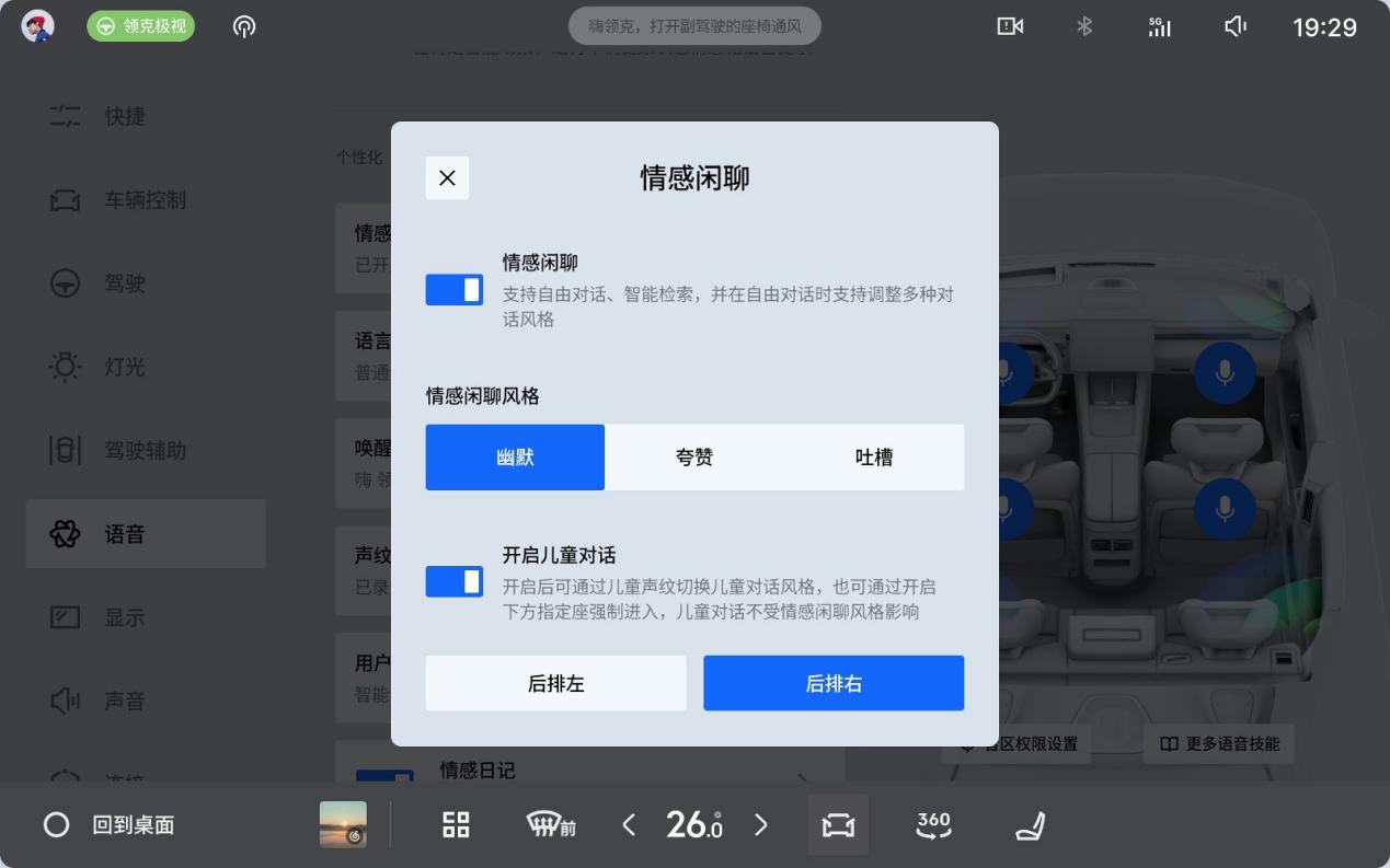在日常驾驶场景中,语音系统的智能程度,直接决定了人与车沟通的意愿。LYNKFlymeAuto2.1.0全新搭载的汽车超拟人智能体Eva,依托星睿AI大模型与阶跃星辰“端到端AI语音大模型”驱动,相比传统方案更注重类人化表达与深层语义理解。它不仅可实现中英文自由切换,还支持粤语、四川话等方言交流,大幅降低“指令不被识别”的尴尬。同时,Eva具备声纹识别能力,可为不同驾驶者建立专属记忆与情感日记,让每次上车都充满“熟悉的陪伴感”。