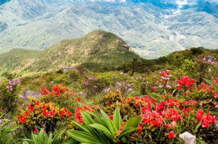 徒步过程中最美的还是林海,五府山山间主要的植被景观有竹海、杜鹃林、松涛、草甸、马尾松林,基本都是成林成片的存在,点缀在山间很是醒目。此外也有一些观赏性老树,只不过只能在小范围看到,景色很好,却不如林海、竹海、花海来的壮观。五府山“饶南仙子”的美誉,更多就是赞美山间植被的葱郁和变化。
