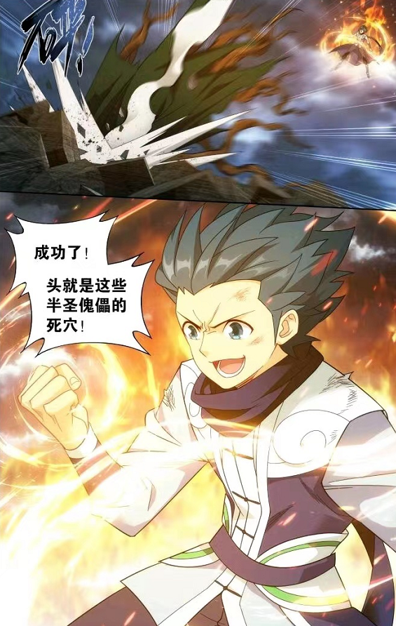 在上一话中,萧炎在疯狂秀恩爱的同时,找到了半圣傀儡的缺点所在,而在“任虚子”鸽了一周之后,新的剧情终于得以展开。萧炎使用金刚琉璃体,向着半圣傀儡的头部打去,并对着大伙喊道,这就是半圣傀儡的弱点。