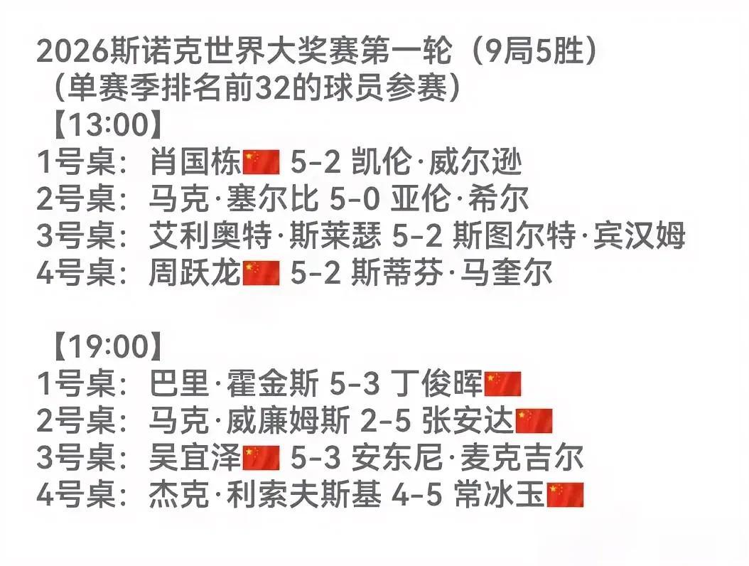 ✅斯莱瑟5-2战胜宾汉姆;塞尔比5-0横扫亚伦·希尔!