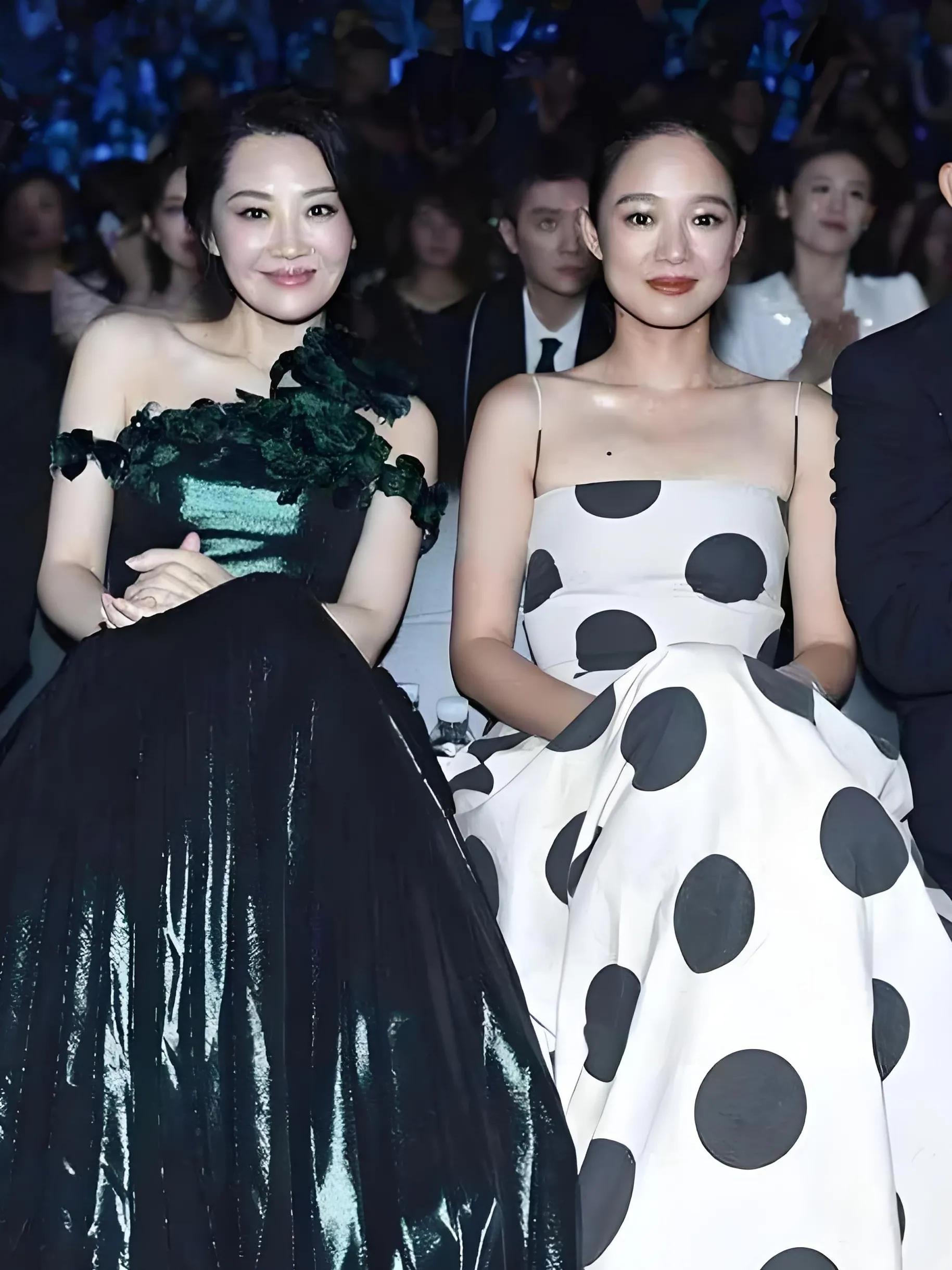不知道是什么时候的照片,两人打扮的都非常漂亮,只是杨颖的表情有些用力过猛,瞪着眼、强撑微笑,反而不如许晴的松弛自然。