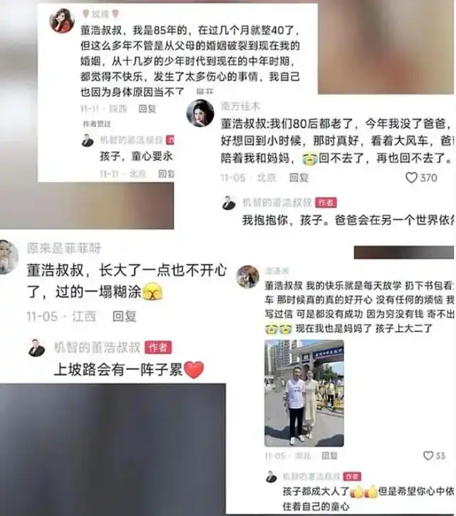 很多朋友把董浩叔叔的留言区当成倾诉心里话的地方。他们还是像孩子一样,只有在董浩叔叔面前,才敢毫无顾虑地展现自己脆弱的那部分,把那些在亲人朋友面前不敢露的情绪释放出来。