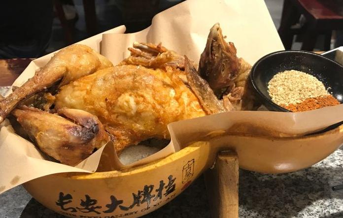这道菜的历史可追溯至唐代,选用的鸡肉要经过清煮、蒸笼和油炸三道工序。