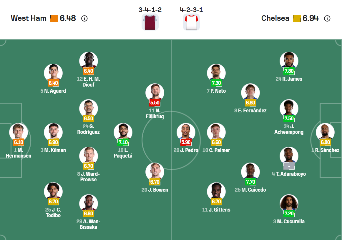 西汉姆联:鲍恩和帕奎塔首战哑火直接导致球队没有进攻,菲尔克鲁格打满全场海雾作用,此役三人的竞技状态决定球队进攻质量,边翼卫迪乌夫和万比萨卡攻守不平衡,回防效果不佳导致边路防守失位,三中卫集体迷失,面对攻防更好的切尔西,球员如果保持首轮状态,恐怕还是很难给球队带来帮助。
