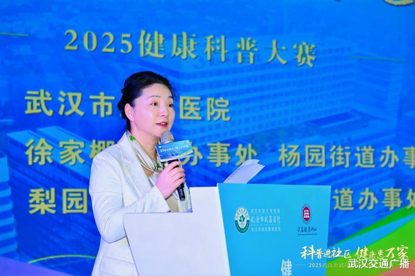 武昌区卫健局副局长胡敏对本次活动给予高度认可,她表示健康科普是新时代卫生健康工作的重要一环,是落实健康中国2030战略的基层实践。要坚持科普惠民,让健康知识接地气;强化协同联动,打造武昌科普品牌;以赛促健提效能,培育健康武昌生力军。要以此次大赛为起点,携手将健康知识转化为武昌居民的健康行动,为加快建设宜居、宜业、宜游的健康武昌、健康武汉贡献自己的力量。