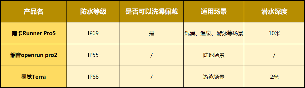 南卡Runner Pro5在防水性能上树立了骨传导耳机防水界的新标杆,通过引入潜艇级纳米防水科技,并遵循更为严格的测试规范,成功斩获IP69级防尘防水认证,将防水能力提升至前所未有的境界。作为骨传导耳机领域的佼佼者,南卡Runner Pro5独占鳌头,成为唯一达到9级防水标准的骨传导耳机。它不仅能在水下长时间稳定工作,更对各类水汽侵扰展现出卓越的防御力,远远超越了市面上一般的游泳耳机所能提供的保护水平,为用户带来前所未有的安心与自由体验。