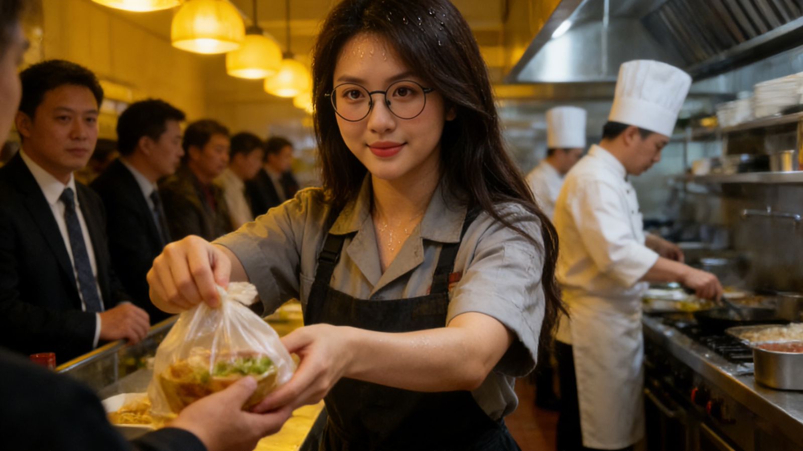 她把工作时间安排得恰到好处,完全避开上课时段,只在午晚高峰干活。饭点的快餐店忙得团团转,林晓站在打包台后,双手不停打包,还要核对“少放辣”“餐具分开装”等备注,安抚等待的顾客,再累也保持着温和的笑。