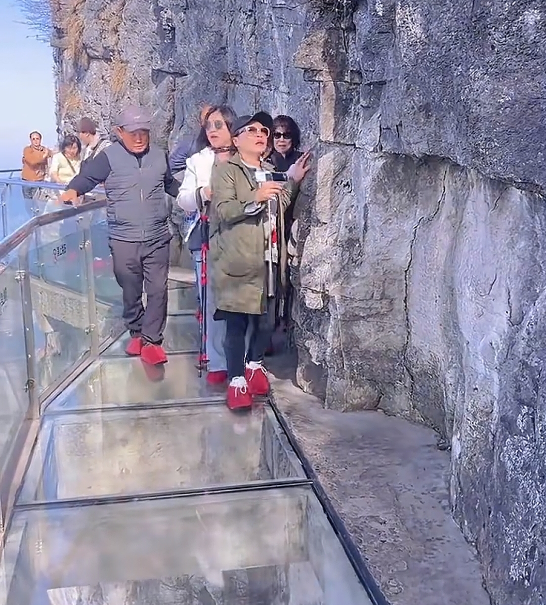 玻璃栈道吓得韩国大妈腿软,还得发ins炫耀