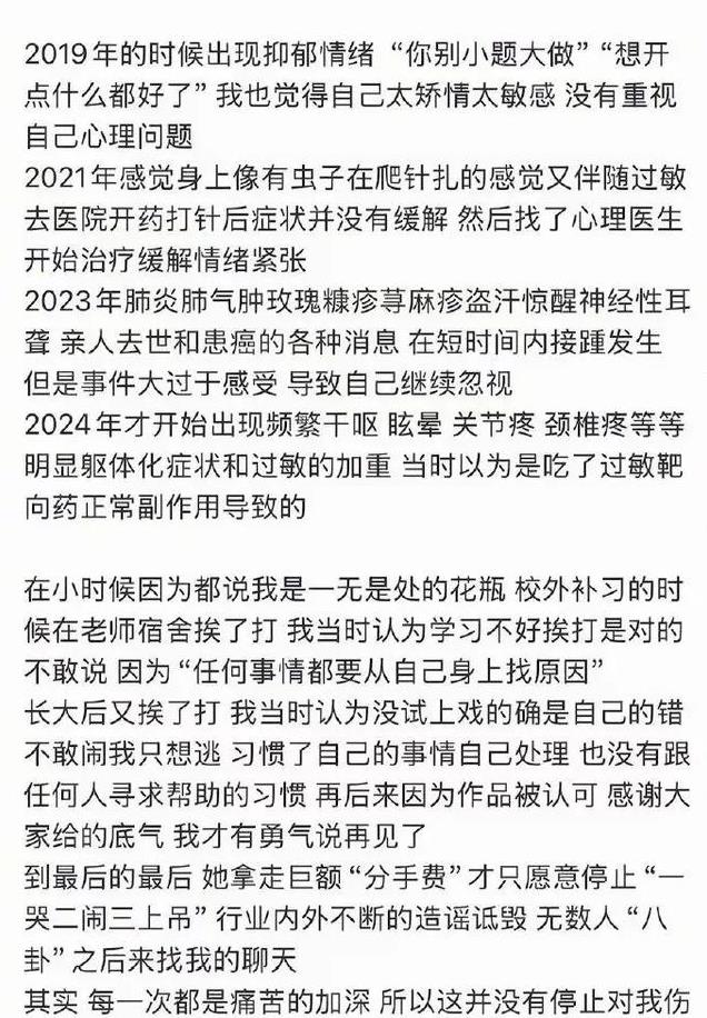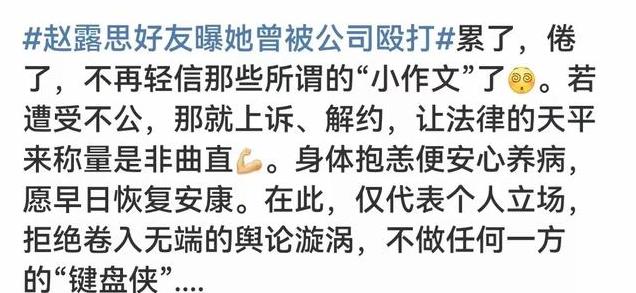 最近发生的种种,先是生病,后是好友爆料她被公司老板殴打辱骂,后来又是朱锐爆料,再加上她也紧跟着发文回应病情。桩桩件件太过紧密,总感觉很刻意。