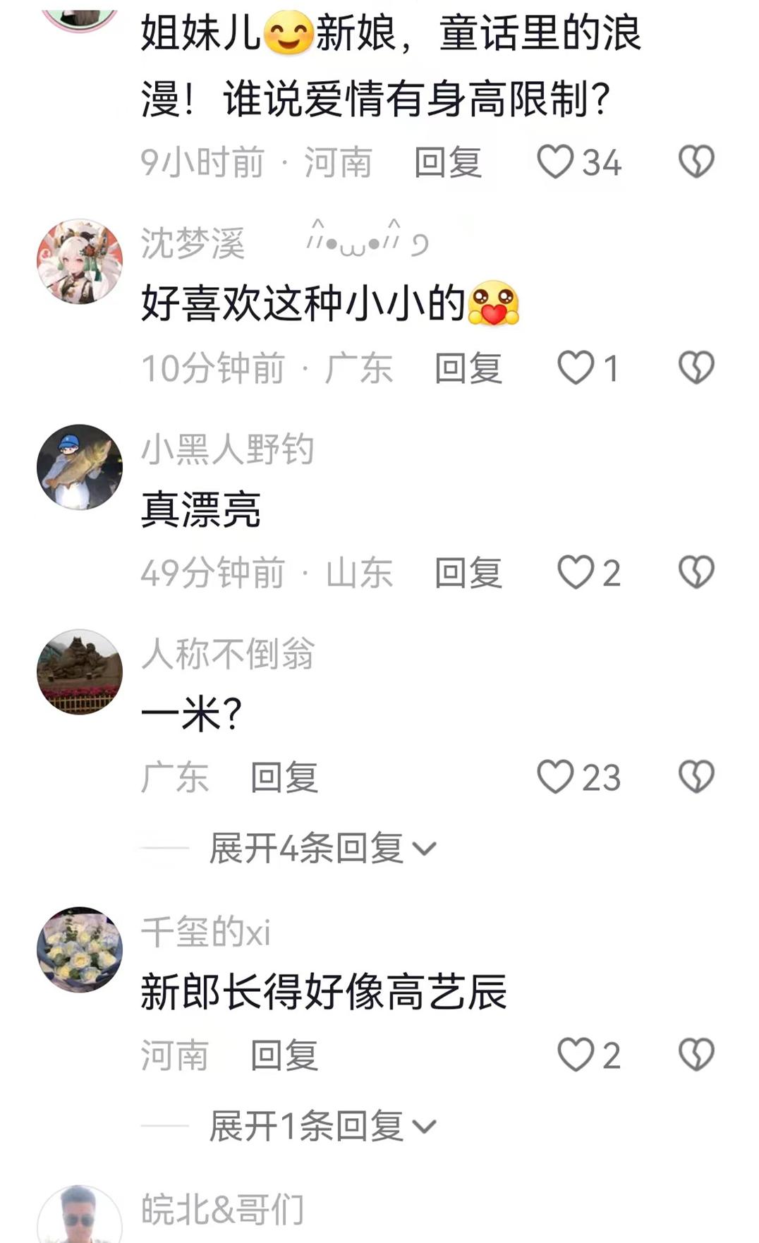 新娘的身高虽然备受质疑,但她的智慧和魅力却很有吸引力。