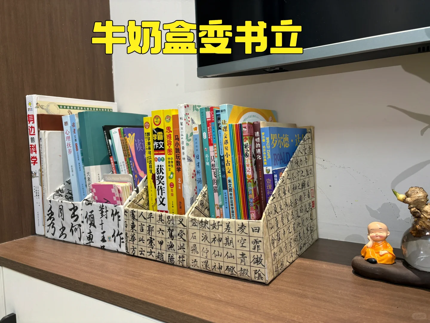 桌面的书乱七八糟的摆放显得很杂乱一定要有一个书立收纳书籍,但其实不用花钱买书立,看看现在的年轻人有多极简,一个书立都可以自己动手搞定,平时买箱装的牛奶就可以拿来当书立。