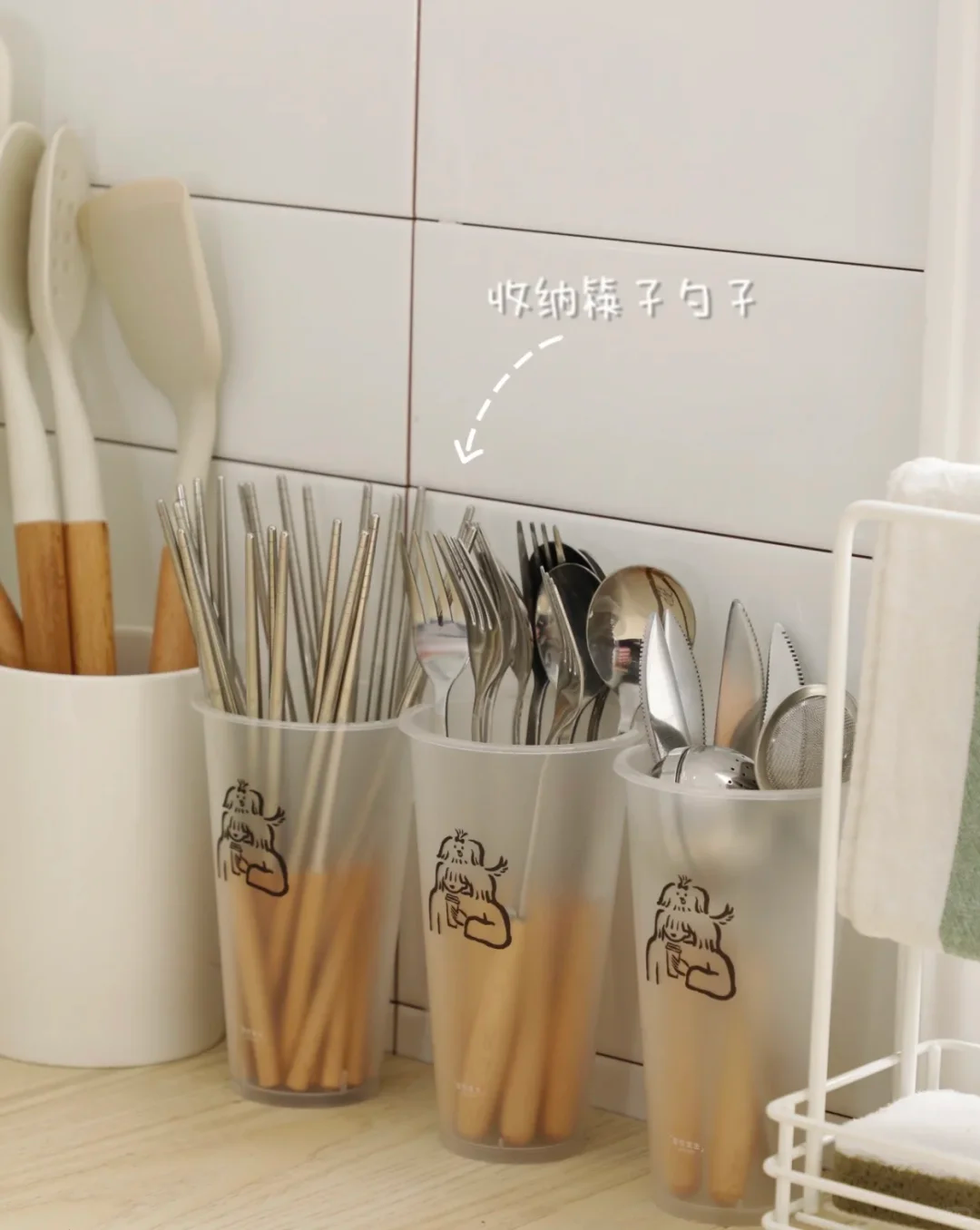 放在厨房还可以当做筷子笼,收纳筷子盒勺子,最好选择透明材质的,能够减低存在感,不会有廉价的感觉。