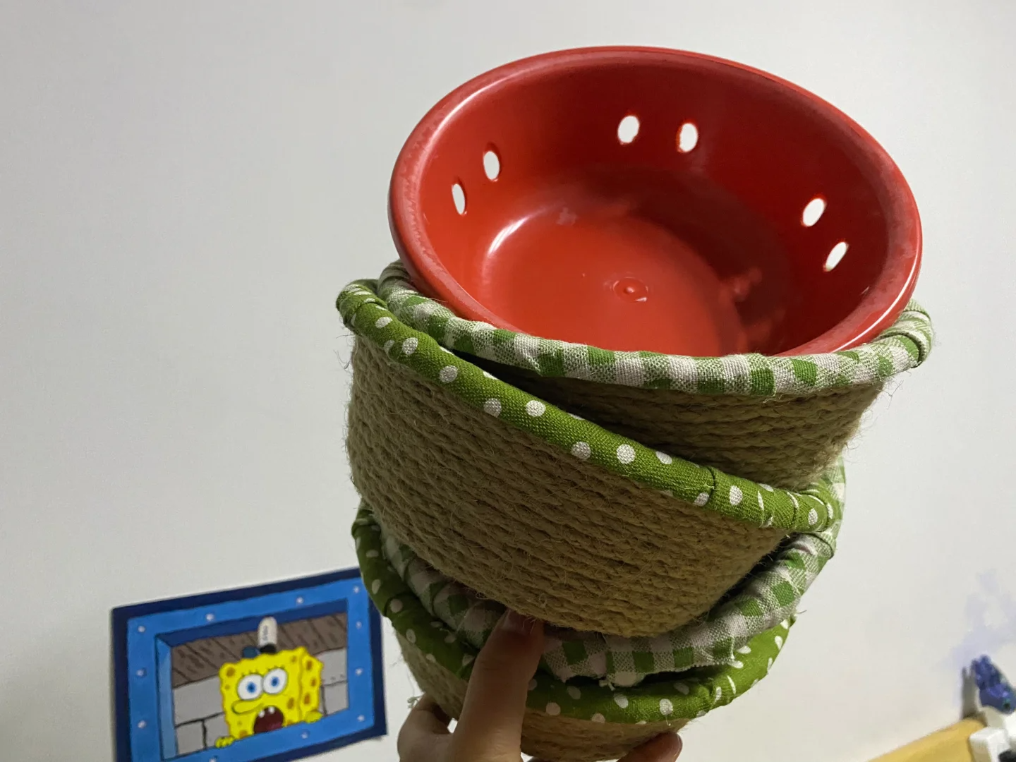 吃完的草莓剩下的小盆不知道干什么基本上都扔掉了,看看现在的年轻人是怎么利用的,其实这个小盆只要简单改造一下就是极好的收纳盒。用小碎花布、热熔胶、麻绳简单装扮一下,立马变身桌面收纳盒,花钱都买不到。