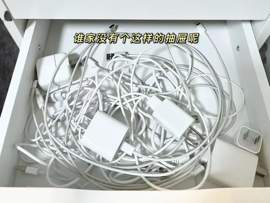 家里的电线乱七八糟的,充电器的线还有电器的电源线,这些电线每次都是直接放在抽屉里,不好好收纳就会缠绕在一起,用的时候还要费力分开,其实收纳这些数据线不用花钱去买专美的收纳工具。