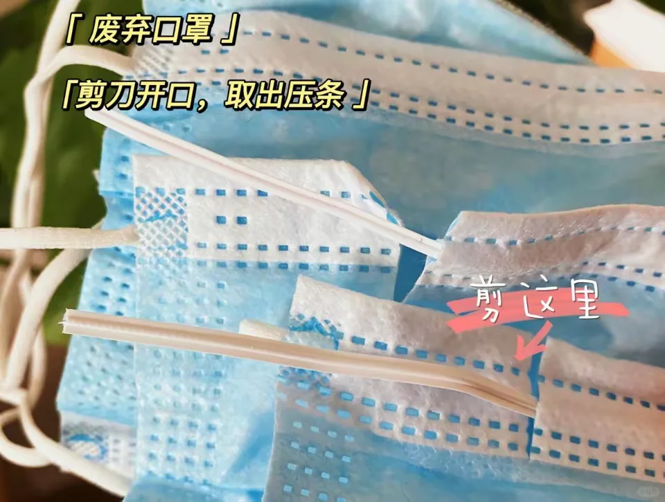平时用过的口罩不要扔,将上面的鼻梁条给取下来,