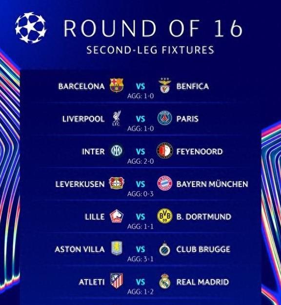 欧冠1/8决赛次回合赛程,24/25赛季欧冠1/8决赛次回合将开战,共8场比赛分两晚进行:01:45:巴塞罗那 vs 本菲卡04:00:利物浦 vs 巴黎圣日耳曼04:00:国际米兰 vs 费耶诺德(勒沃库森 vs 勒沃库森 比赛时间未定)。
