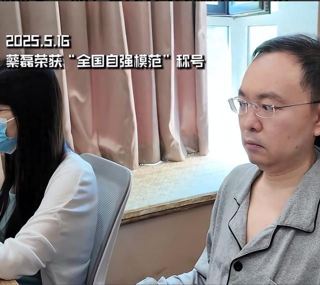 2025年的5.18日,蔡磊获评“全国自强模范”称号,尽管现在的全身肌肉萎缩近30斤,面部也浮肿起来,对比之前已经大变样了,但是他每天依旧坚持在电脑面前工作,推动新的治疗方式进行。