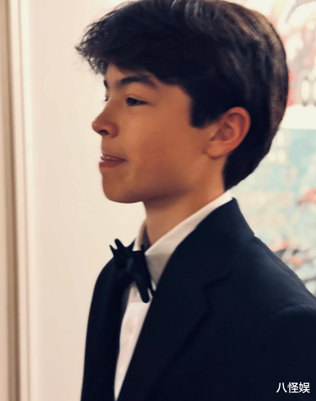 晒出的照片中,身为寿星的小鲍身穿黑色西装入镜,头发梳成了大人模样,侧脸入镜的他鼻子高挺,眉毛又黑又密还是双眼皮,五官看起来更像法国爸爸。