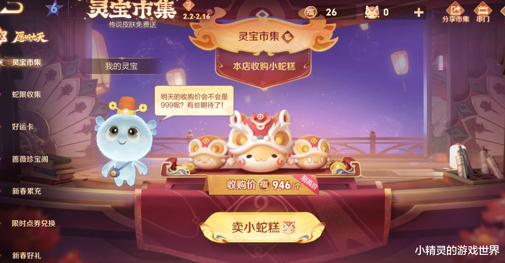 活动时间:2月2日逐步开启—2月16日23:59。在活动期间,每日参与任务就可以获得小蛇糕,出售小蛇糕可以获得小福币,而利用小福币则可以刷新礼盒,刷新的次数越多,获得高级奖励的概率就会越高,最高可以获得传说级的皮肤。