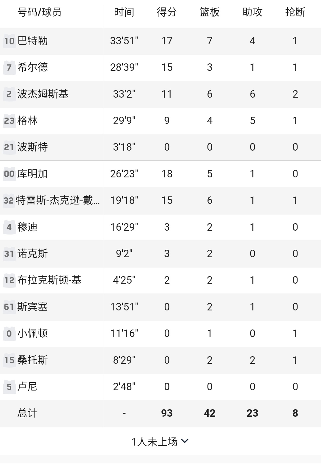 勇士球员在没有库有引力的吸引下,得不到空位的出手,甚至半节多比赛只有五分的得分,但随着科尔的调整,勇士球员慢慢适应下来,虽然输掉了比赛,但库明加和土鸡蛋也打出了不错的表现,可以进入轮换。