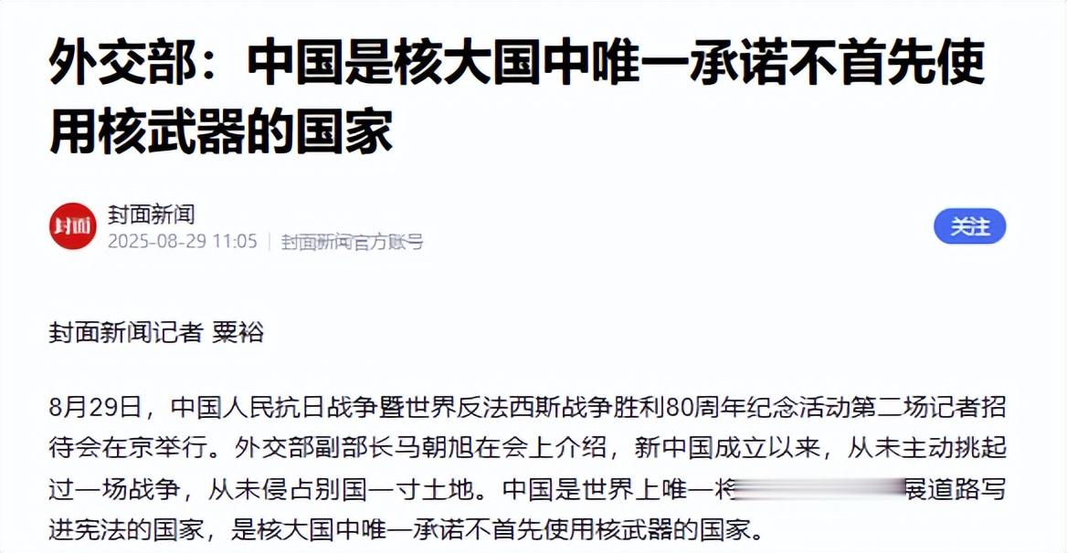 一研究才发现:中国坚持核不首先使用政策,导弹是为了防守,不是用来扩张,更不是拿来吓唬谁的。