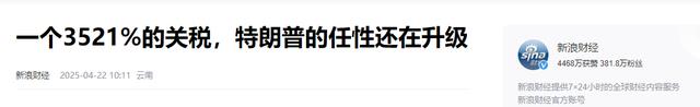 原文记载于新浪财经2025.04.22关于:一个3521%的关税,特朗普的任性还在升级