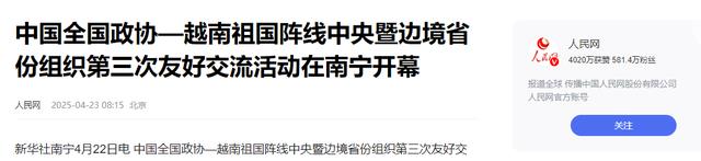 原文记载于人民网2025.04.23关于:中国全国政协—越南祖国阵线中央暨边境省份组织第三次友好交流活动在南宁开幕