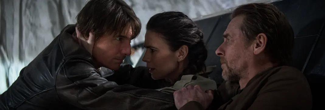 要说《碟中谍8》也不是没亮点。 62岁的阿汤哥还能不带替身完成双机穿梭名场面:两架螺旋桨飞机贴着南非峡谷玩贴地飞行,他单手吊在舱门外被强风吹到面部变形。 有观众拍到大银幕上他右手青筋暴起的特写,弹幕都在刷“这手比我爷爷的养老金存折还皱”。