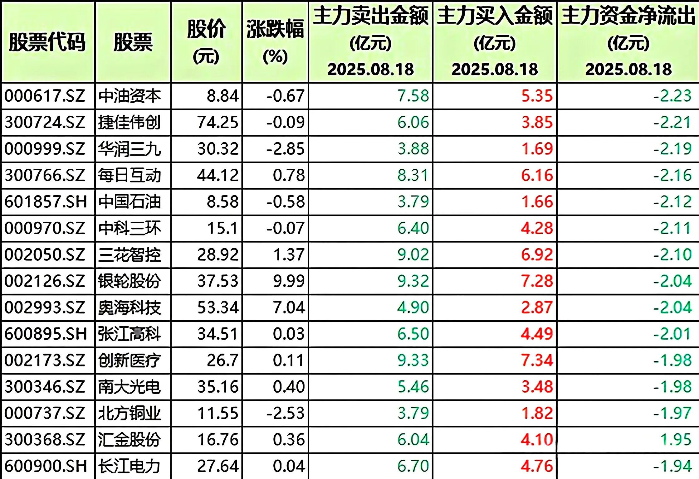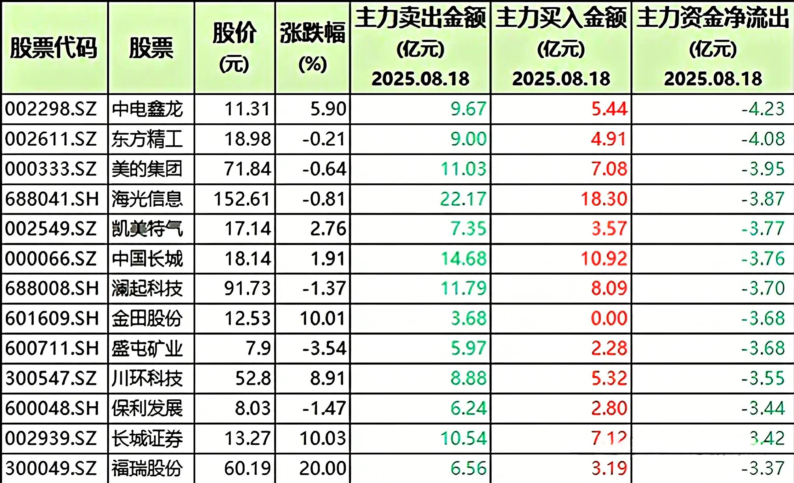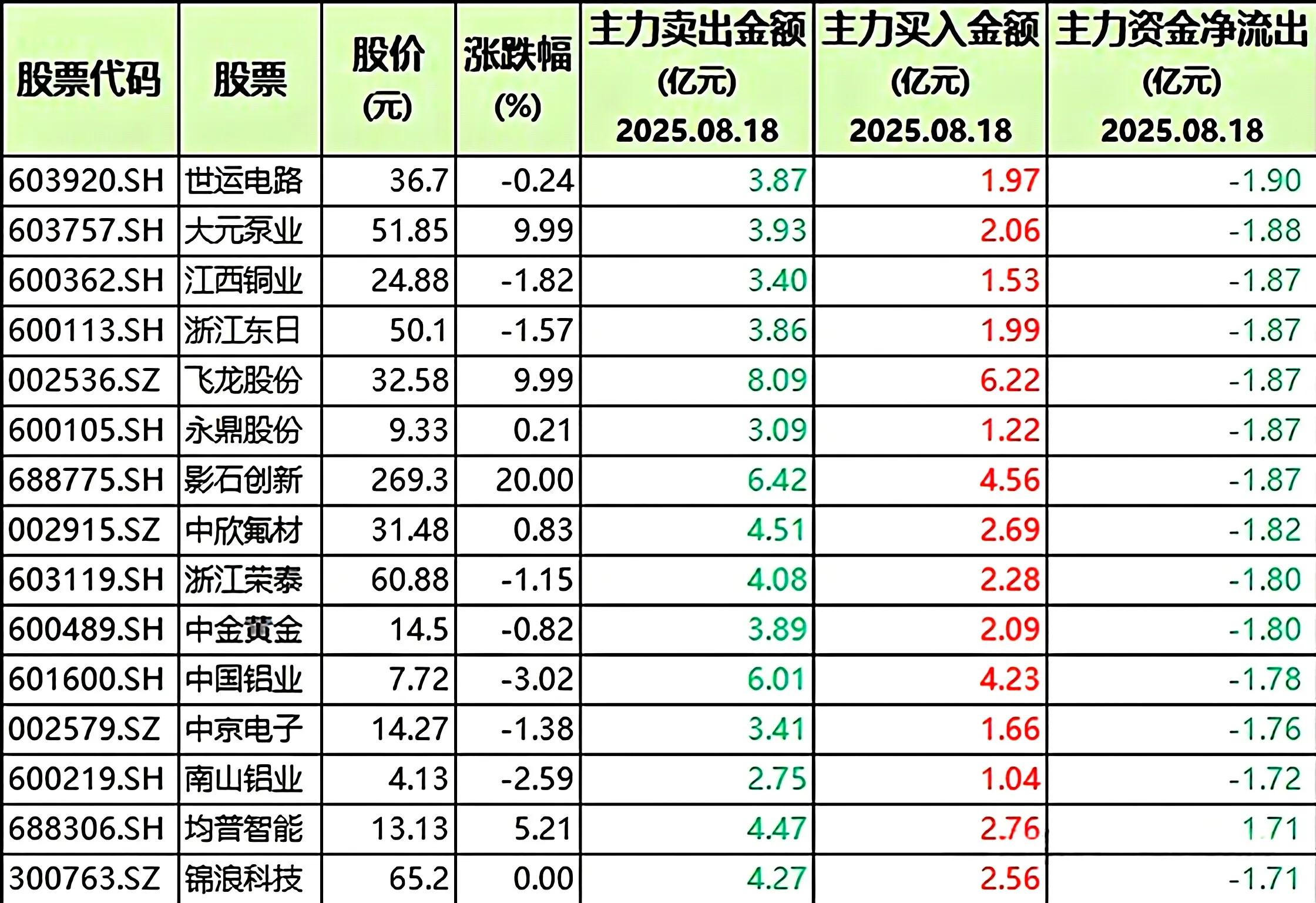 注:本文基于2025年8月18日主力资金公开数据整理,内容客观公正。市场有风险,投资需谨慎。