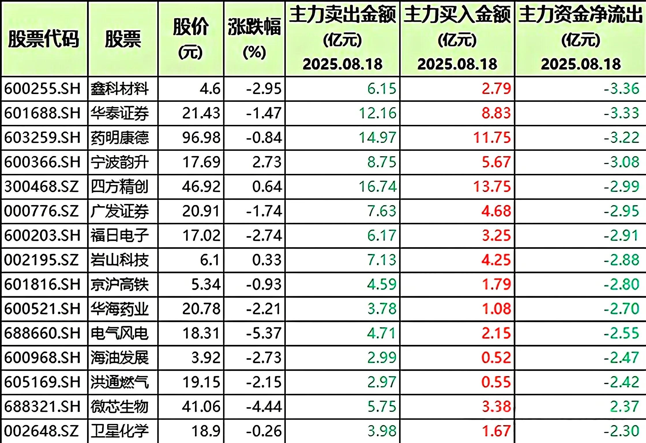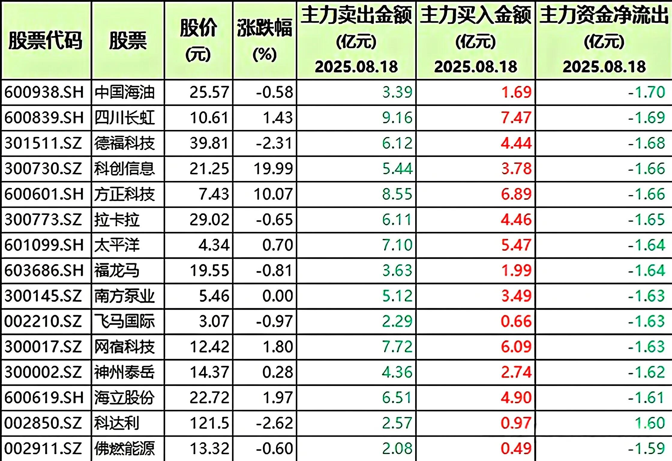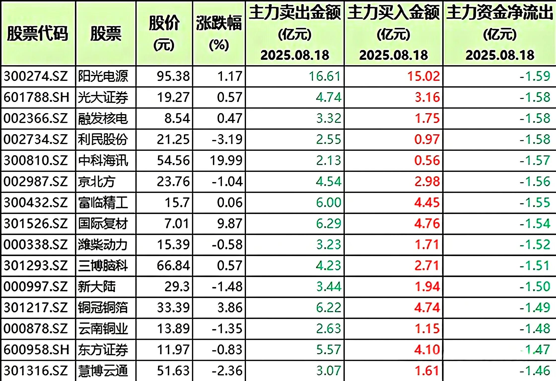 注:本文基于2025年8月18日主力资金公开数据整理,内容客观公正。市场有风险,投资需谨慎。