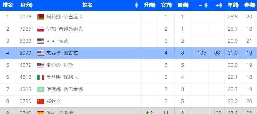 在世界女子网坛,排名不仅仅是数字,更是实力的象征,它关乎着比赛的种子席位、商业代言以及球员的自信心。