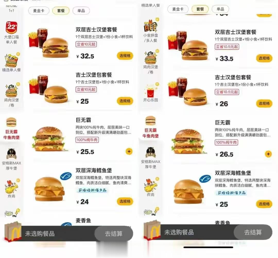 麦当劳各类产品上涨,大约是在0.5元到一元之间,而且涉及涨价的快餐商品还非常多,基本上可以属于全员涨价。不过被网友调侃为“穷鬼套餐”的“1+1随心配”套餐,价格仍然为13.9元,这次没涨价。不过细心的网友也记得,虽然这次没涨,但是上次已经涨过了,因为之前好像只有12元,难道是梯次涨价吗?近两年来中国餐饮市场的内卷化,让消费者深刻感应到去饭店吃东西要比以前便宜了。明显高档的餐厅生意不如以前好了,而麦当劳作为民众消费的平价快餐厅,更应该抓住这一次消费下移的好时光,但是却是逆势上调价格。在目前餐饮选择越来越多的大趋势下,这绝对是一个不明智的做法。