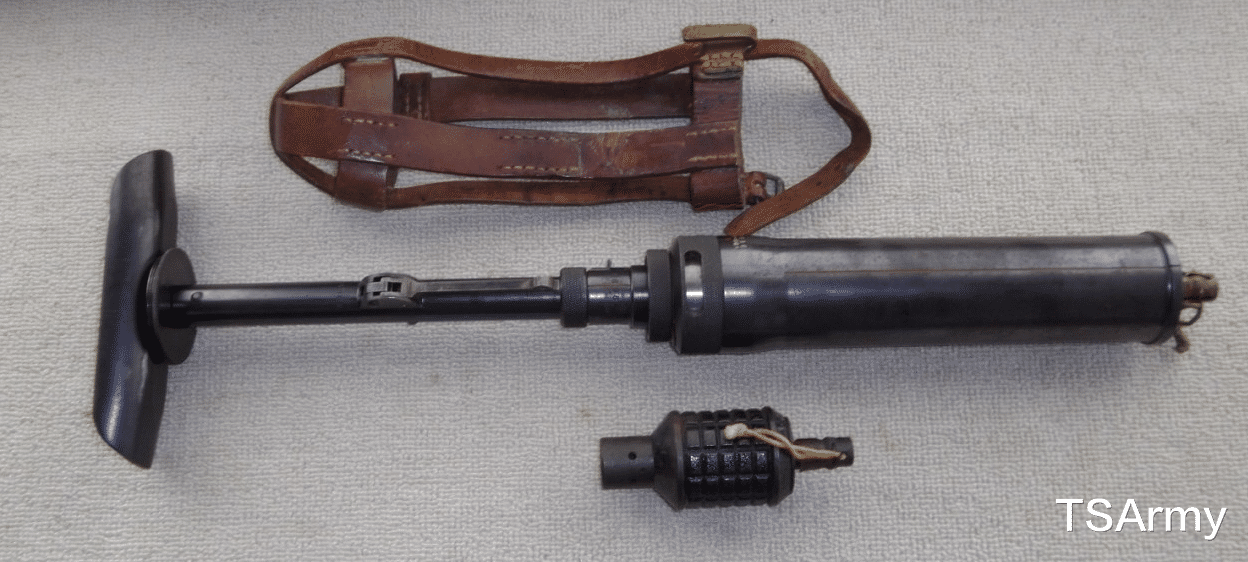 这是二战期间日本军队装备的一种反坦克手榴弹,也是在1939年开始装备服役,被命名为九九式反战车手榴弹,由于是通过磁性原理吸附在战车上进行引爆的,所以它也叫做九九式磁性反战车手榴弹。
