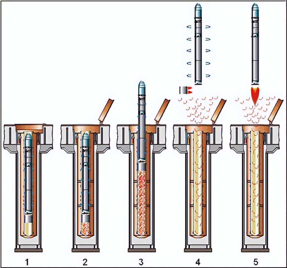 缺点是冷发射技术比较复杂,需要额外的气体发生器、弹射装置、抛盖系统,机械结构和触发机构复杂度上升,使研制难度、成本和维护需求更高。冷发射对弹射可靠性要求极高。导弹必须被精确地弹出到合适高度和姿态,否则可能导致二级点火失败、姿态不稳定甚至坠落,因此气体弹射系统的可靠性成为关键短板。