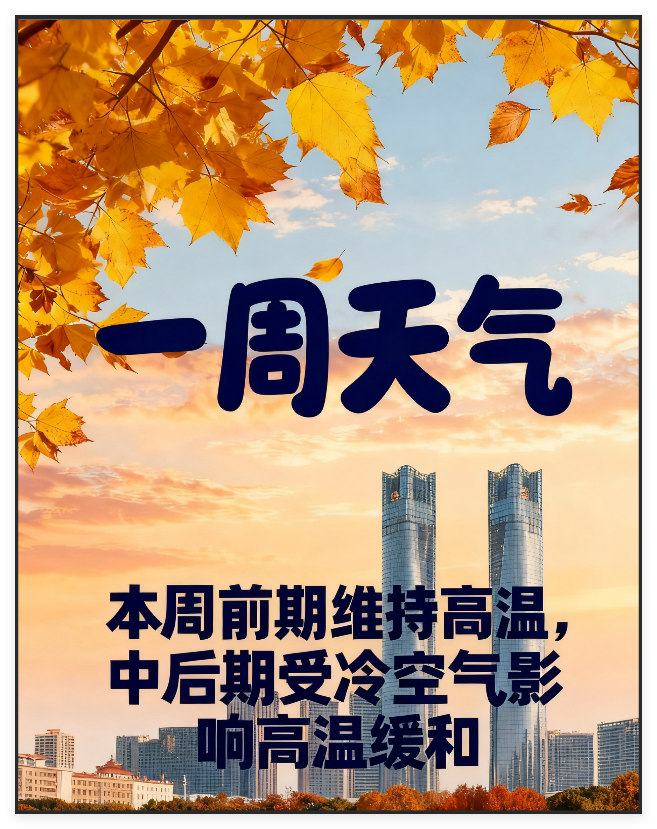 气象快报:预计本周我市前期晴热维持,中后期受冷空气影响高温缓和。其中,15-16日晴天多云,28~37℃;17-18日晴天转多云,部分有阵雨或雷阵雨,17日傍晚开始受冷空气影响,偏北风力加大,高温天气逐渐缓和,26~36℃;18日多云间晴,局部有短时阵雨,25~31℃;19日多云,局部午后有阵雨或雷阵雨,26~33℃;20-21日多云间阴天气为主,部分地区有阵雨或雷阵雨,20日27~34℃,21日26~32℃。