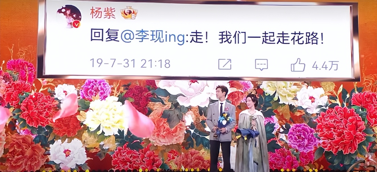 不仅全舞台背景换上了和电视剧符合的牡丹,还给了两个人长达十几分钟的宣传时间。