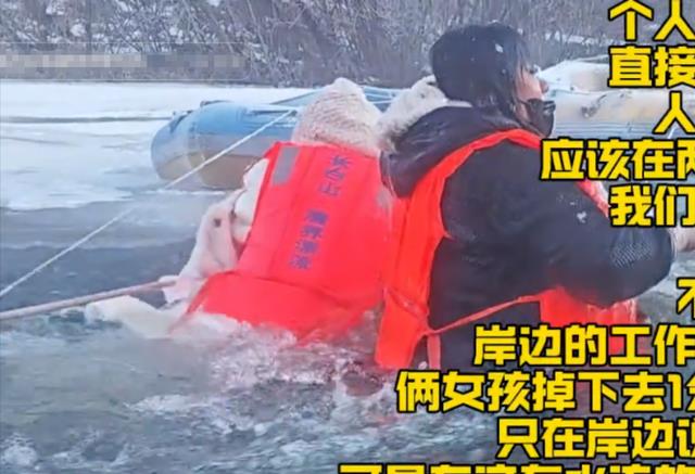 这两个女生竟然直接掉到了长白山的河里,就算河里的温度比岸上高那她们上岸以后呢,在泼水成冰的季节湿衣裤保不准会立马结冰。