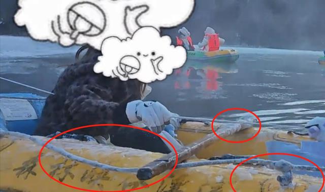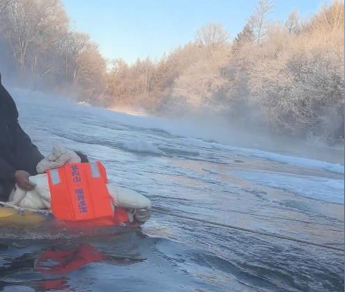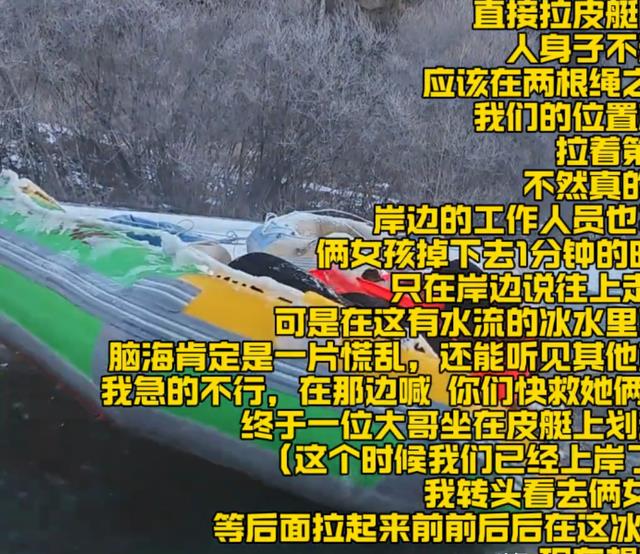 谁能想到这个雾凇漂流危险性这么高,昨天两个女生漂流的时候不慎翻船落水了,她们在冰凉刺骨的河水里待了将近五分钟才被救起。