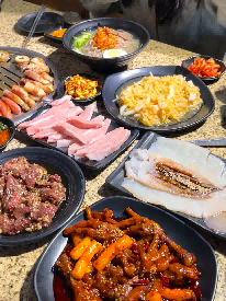 推荐牛五花和牛肉拌饭,肥而不腻还有股奶香味,包着生菜吃绝了,牛肉拌饭也是有一点甜口的,里面青红辣椒蘑菇配菜很多也很好吃~