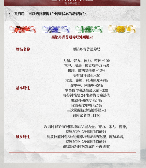 光环外观:分为普通光环和特别光环。普通光环背后是一幅画,上面有“梅兰竹菊”等样式;特别光环背后是一堆山水,也有4种款式对应“梅兰竹菊”。